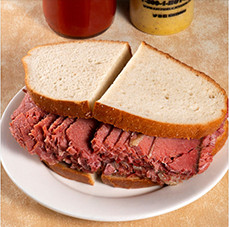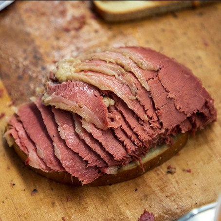 Our corned beef is one of the most versatile deli meats on our menu. The flavors meld perfectly to create some of the most iconic dishes served: When the corned beef is finally ready, the brisket has turned a shade of pink that will remain throughout the cooking process. Our kitchen staff will boil and steam the meat until it is perfectly tender. Then, it's sent to our counters where it is carved by hand by best meat carvers in NYC. You just can't get the same flavor any other way!